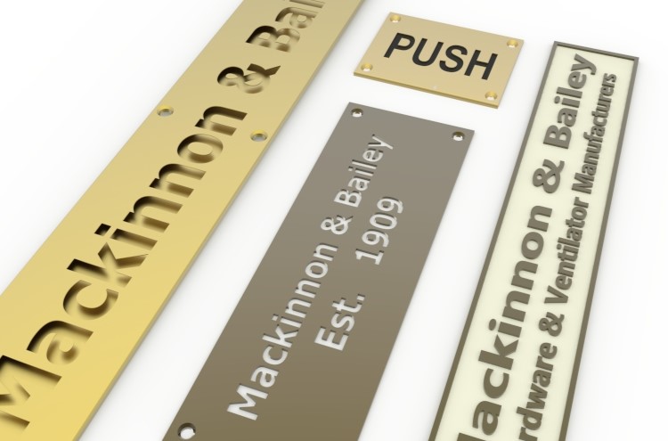 Quality manufactured laser cut signs and name plates. Consisting of a colour backing plate combined with laser cut top plate .