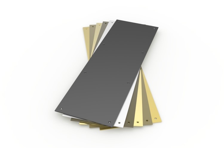 Mackinnon & Bailey Manufacture Quality Kick Plates in various thicknesses & finishes with other options available .
